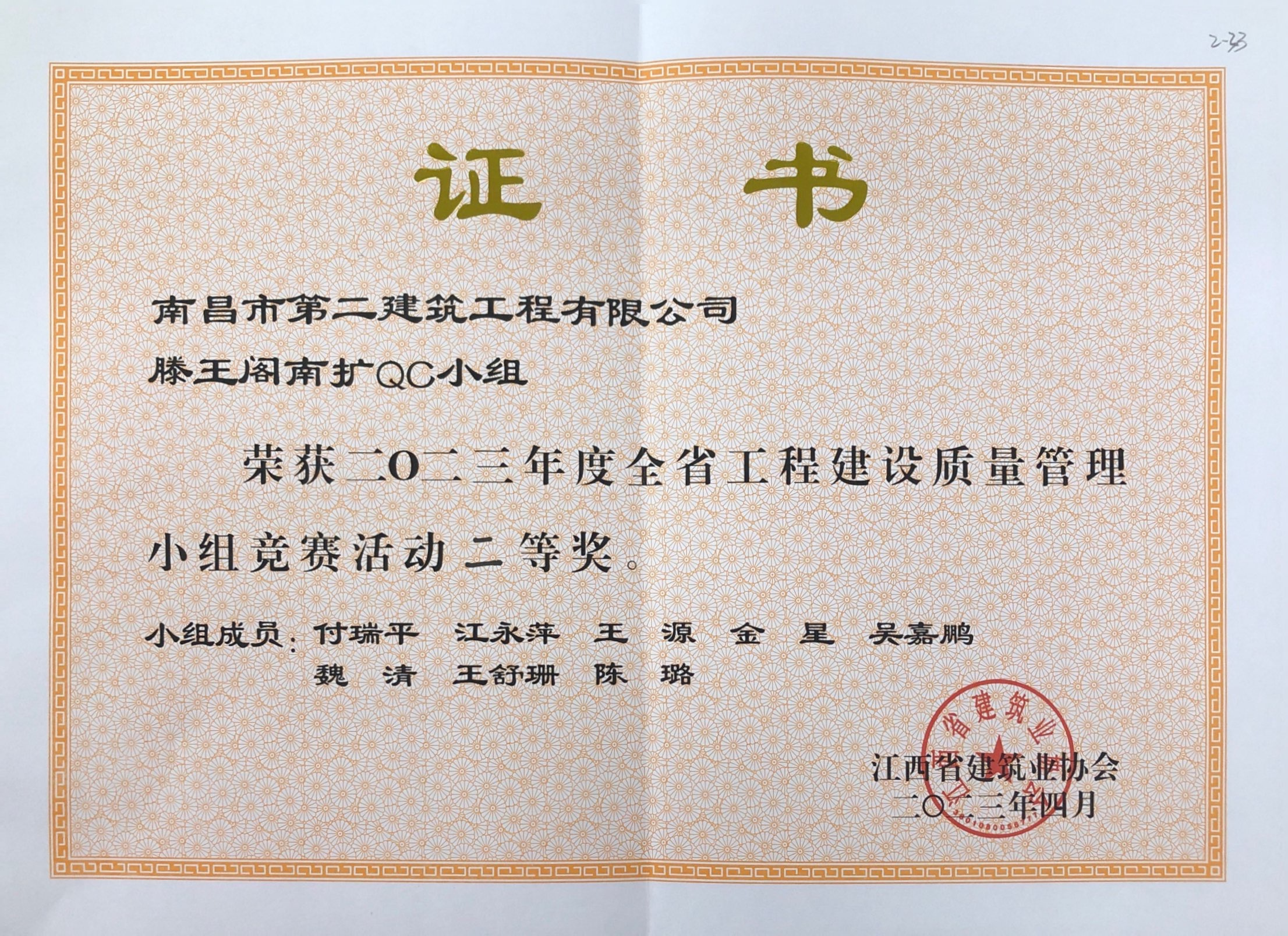 【概要描述】 近日,江西省建筑業(yè)協(xié)會在嘉萊特精典國際酒店召開2023年全省工程建設質量小組競賽成果發(fā)布會,南昌市第二建筑工程有限公司申報的兩個課題—...